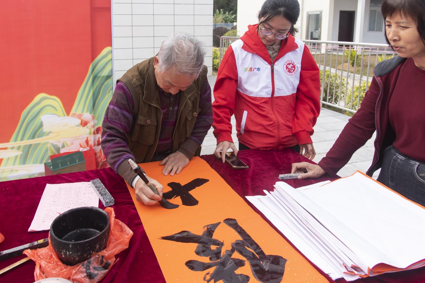 新春渐近,年味愈浓。为传承中华优秀传统文化,彰显赤溪客家文化特色,丰富群众精神文化生活,营造喜庆祥和、温馨浓厚的新年氛围,近日,赤溪镇人民政府联合台山市文学艺术界联合会、台山市文广旅体局开展“送万福进万家”挥春活动,将笔墨书香与新春祝福送到群众心坎上,让大家在红红火火的氛围中迎接马年新春。