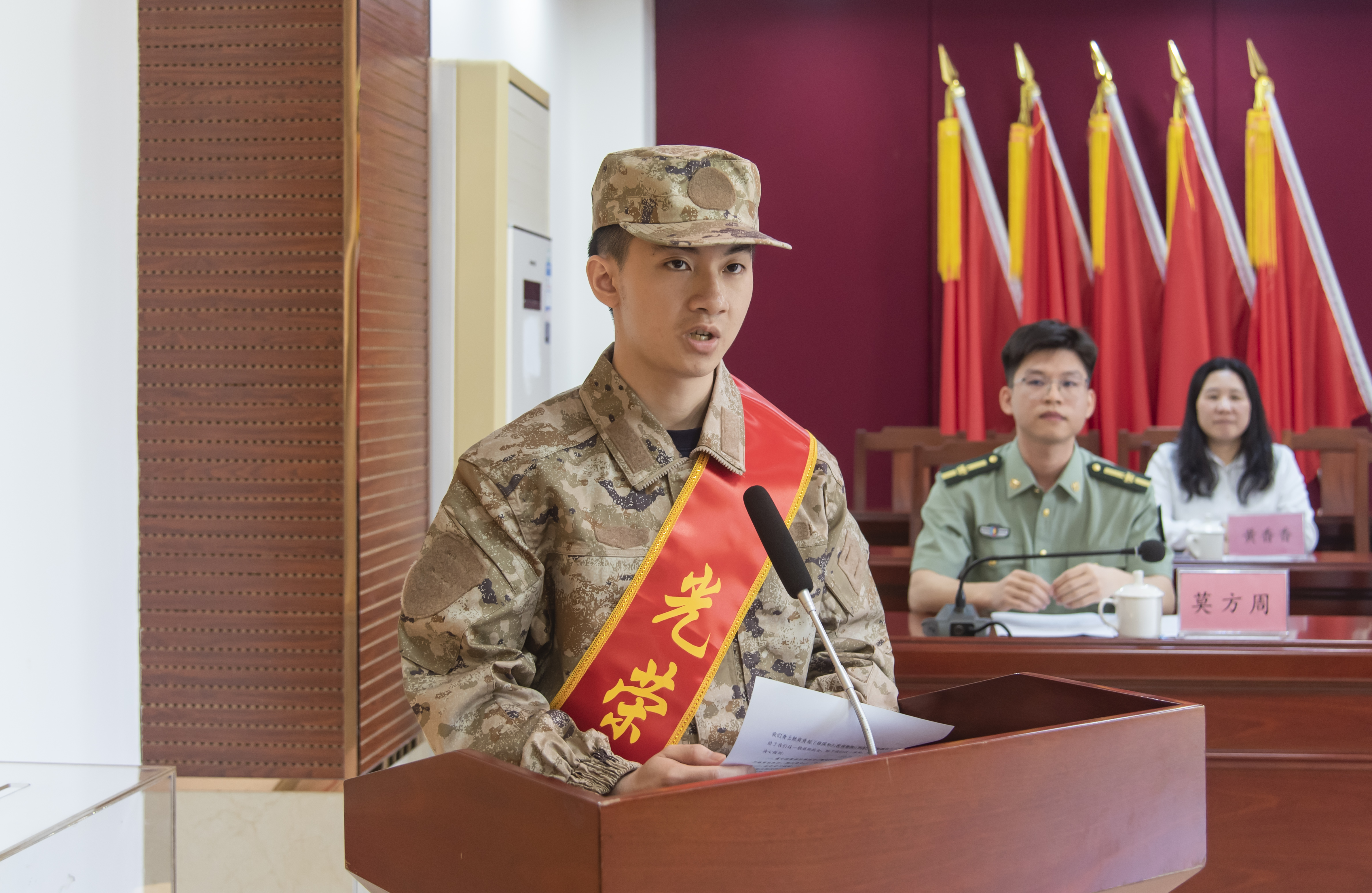 新兵代表陈景熙在发言中难掩激动之情:“到部队后,我们一定服从命令、严守纪律、刻苦训练,尽快从一名普通青年成长为一名合格军人,绝不辜负家乡人民的期望,为家乡人民争光,为军队现代化建设作出最大贡献!”