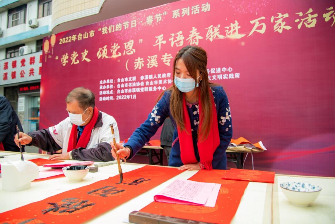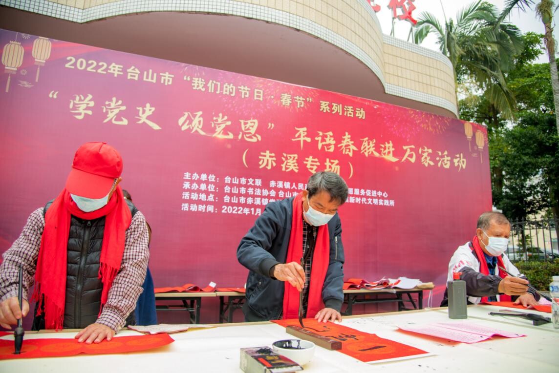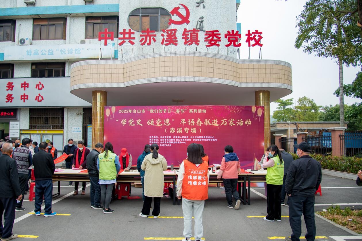 春联是过年的重要习俗,是迎接春节不可或缺的一道风景。在春节来临之际,为弘扬中华优秀传统文化,推动社会主义核心价值观融入百姓生活,营造喜庆的新年氛围,1月18日上午,台山市文联、赤溪镇人民政府联合在赤溪镇党校门口举行“学党史 颂党恩”平语春联进万家活动。