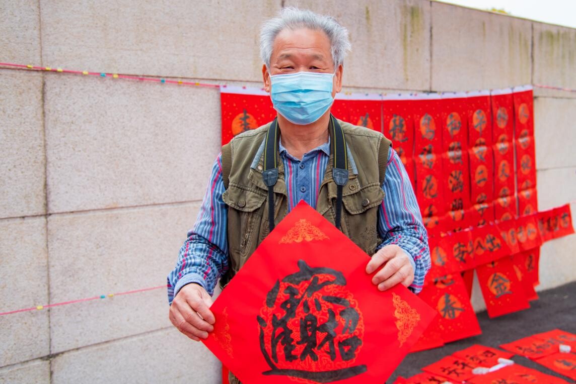 寒冷的天气阻挡不了群众高涨的参与热情,不少群众早早地来到现场,大家做好防疫措施,戴好口罩,听从现场志愿者的指引,保持间隔,有序排队,等待书法家为他们写好心仪的春联、福字。现场张小姐请书法家写了个“囍”字,笑称希望新的一年可以心想事成、双喜临门,也祝愿天下有情人终成眷属。