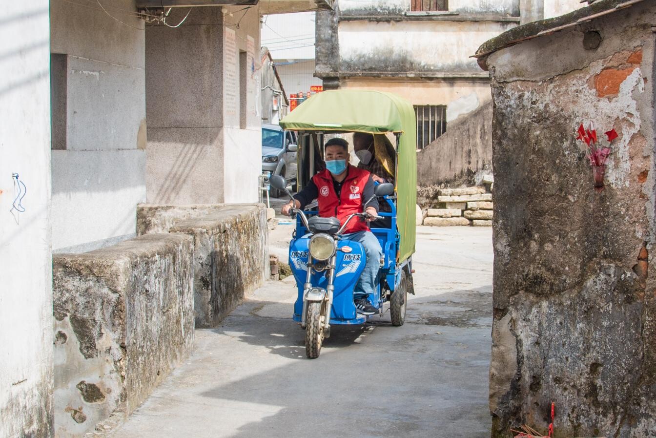 “阿伯,你稍等一下,我送你回去。”驻田头村第一书记黄灿杰在现场充当起老人们来往家和村委会之间的接送司机,负责把行动不便的老人接出村委会参与体检、接种疫苗,再逐一把他们送回家。为方便上村入户宣传发动和提供接送服务,三轮车、摩托车、汽车等皆成为当天参与志愿服务的镇村干部信手拈来的交通工具,贴心的接送赢得群众的好评。