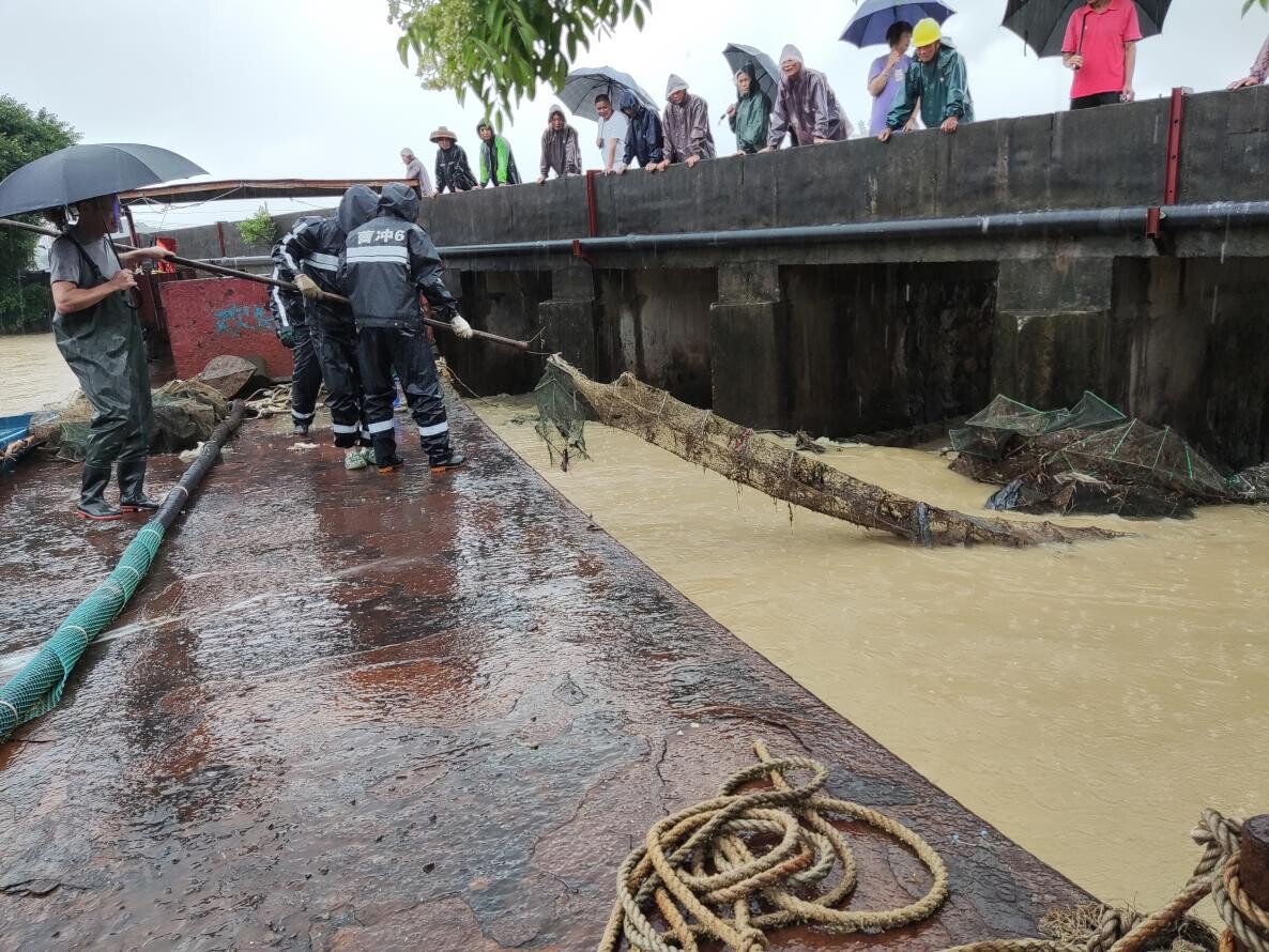 磅礴村委会旁石斗水闸河水暴涨,存在水流外溢的风险,赤溪镇立即安排钩机对河水带来的杂物及时进行清疏,排除河道险情,让水闸顺畅排水。