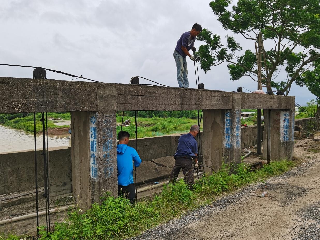 赤溪镇人大代表杨志通带领志愿者对开裂路面进行简易封闭