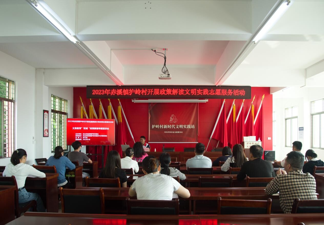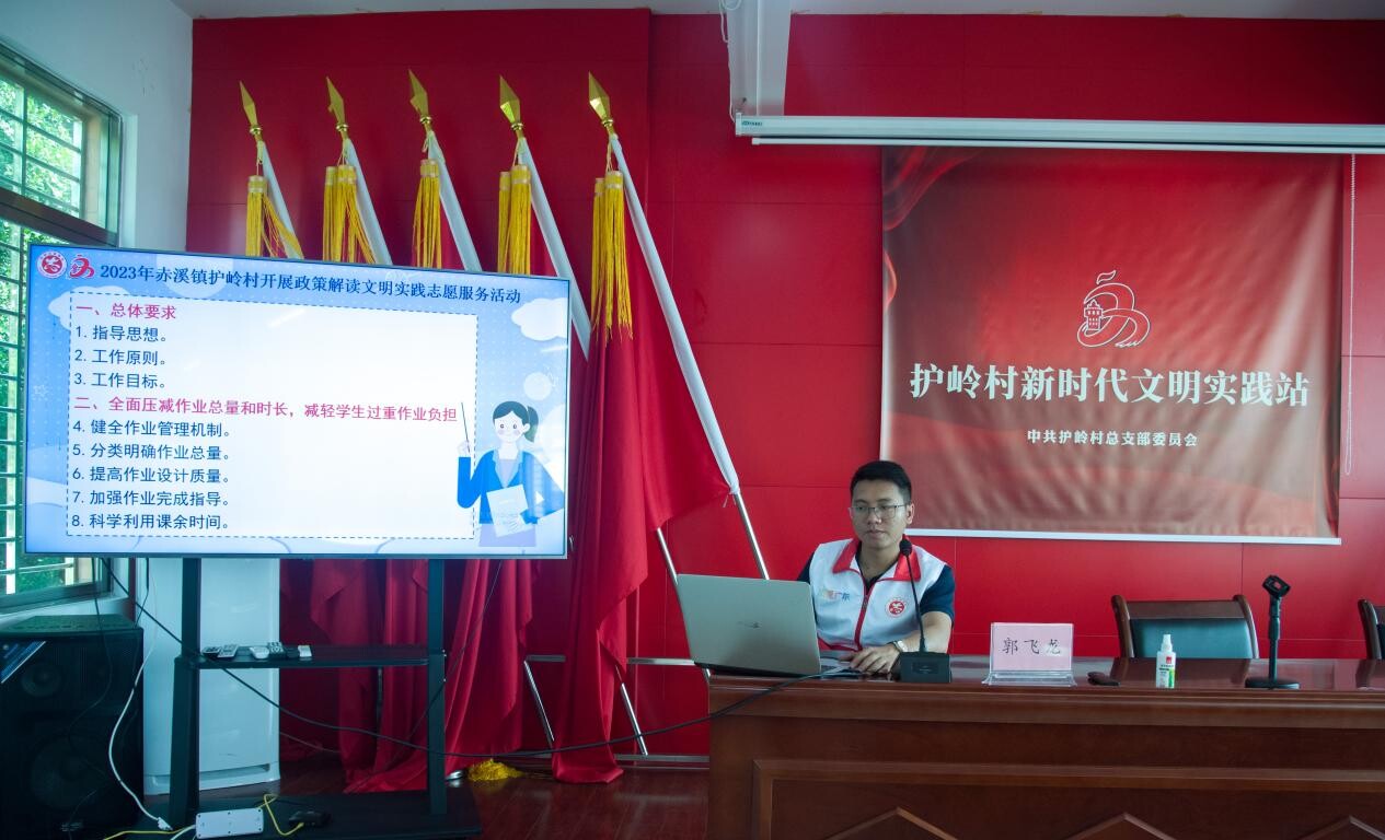 为积极响应国家“双减”政策,将“双减”政策宣传至千家万户,3月16日,赤溪镇新时代文明实践所联合镇文体服务中心在护岭村新时代文明实践站开展政策解读文明实践志愿服务活动,活动以专题宣讲会的形式开展,会上对义务教育“双减”政策进行了详细的解读。