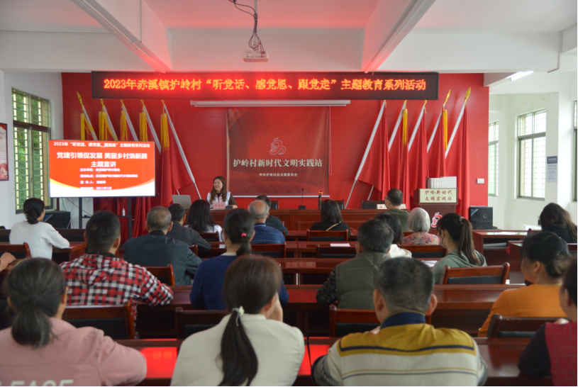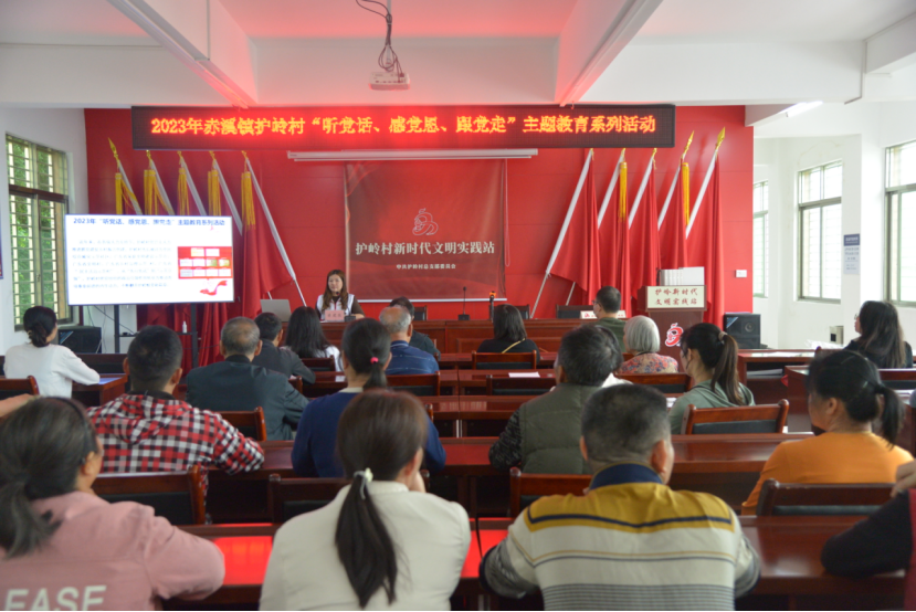 为不断增进党员群众爱党、爱国、爱社会主义的情感信念,不断推动党的理论创新成果走向群众、贴近群众、服务群众,近日,赤溪镇在护岭村新时代文明实践站召开“听党话、感党恩、跟党走”主题教育活动。