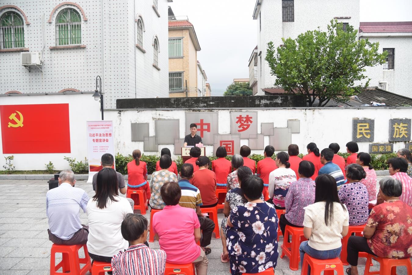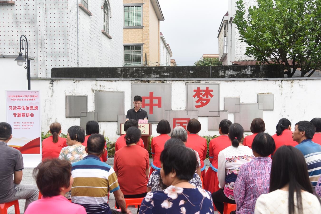 为推动习近平新时代中国特色社会主义思想深入人心,5月25日上午,赤溪镇护岭村新时代文明实践站充分发挥宣传群众、教育群众、引领群众、服务群众的独特优势,在护岭公园开展了习近平法治思想专题宣讲会。