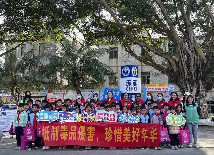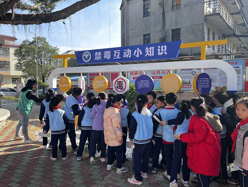 元旦来临之际,为了把禁毒宣传融入传统佳节,更好地营造禁毒示范创建的良好氛围,近日,赤溪镇禁毒办联合赤溪镇派出所、挚爱社工和禁毒志愿者邀请赤溪镇中心小学的师学生们一起参观赤溪禁毒公园并开展禁毒风趣小游戏。