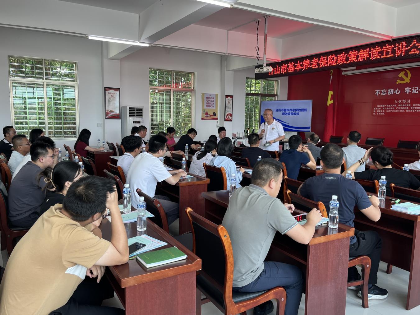 为进一步提高群众对基本养老保险各项政策的知晓率和参保意识,促进我镇基本养老保险提质增效,6月21日,赤溪镇联合市人社局、市税务局和市社保局在赤溪镇护岭村开展基本养老保险政策解读宣讲会。赤溪镇各村(社区)“两委”干部、驻点干部和村民群众等60余人参加了本次活动。