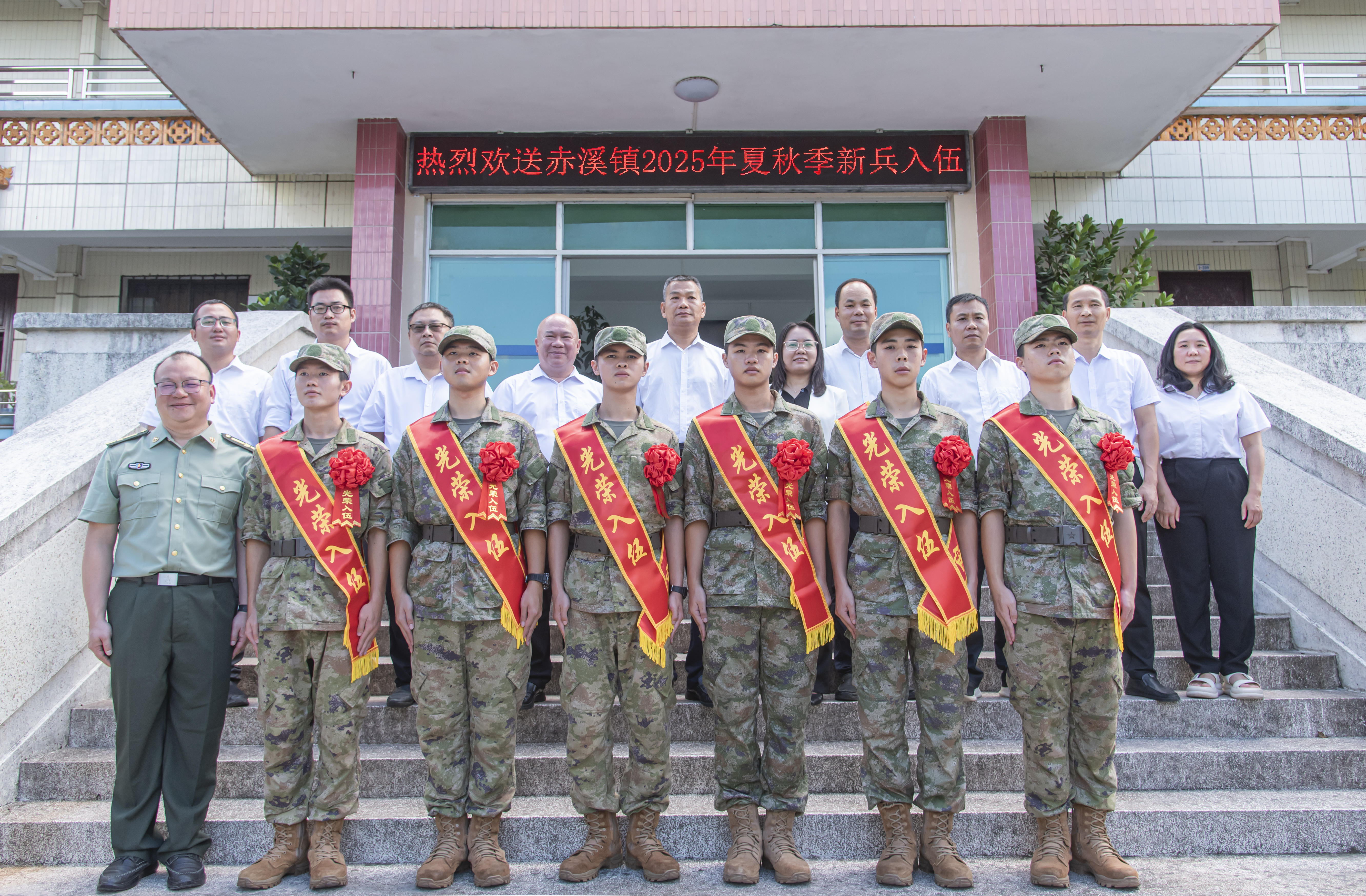 9月12日上午,赤溪镇隆重举行2025年夏秋季新兵入伍欢送大会,热烈欢送6名优秀青年新兵光荣入伍。赤溪镇领导班子、入伍青年及其家属、各村(社区)党组织书记参加欢送会。