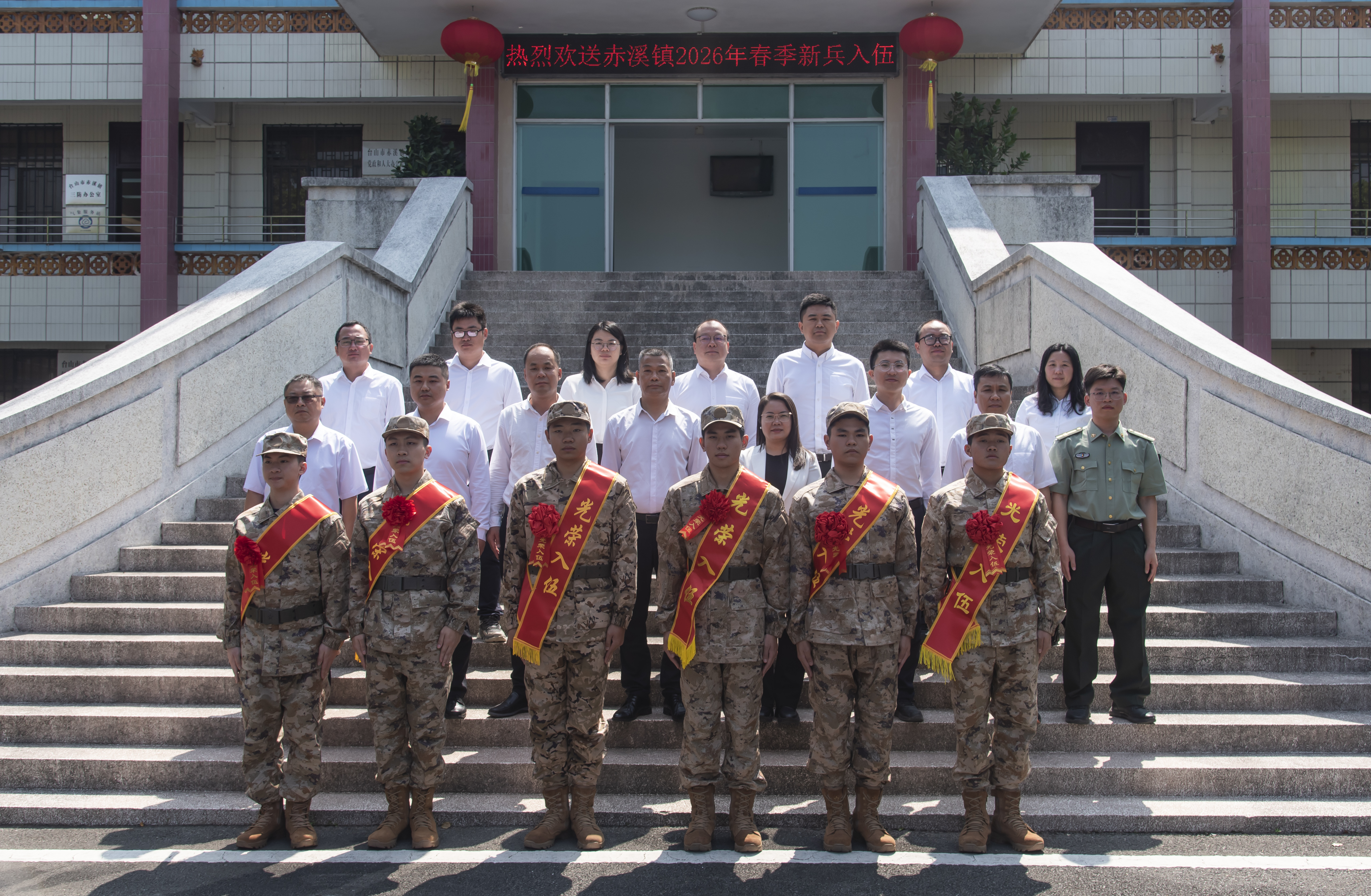 3月12日上午,赤溪镇隆重举行2026年春季新兵入伍欢送大会,热烈欢送6名优秀青年新兵光荣入伍。赤溪镇镇村干部、入伍青年亲友家属、师生代表等参加欢送会。