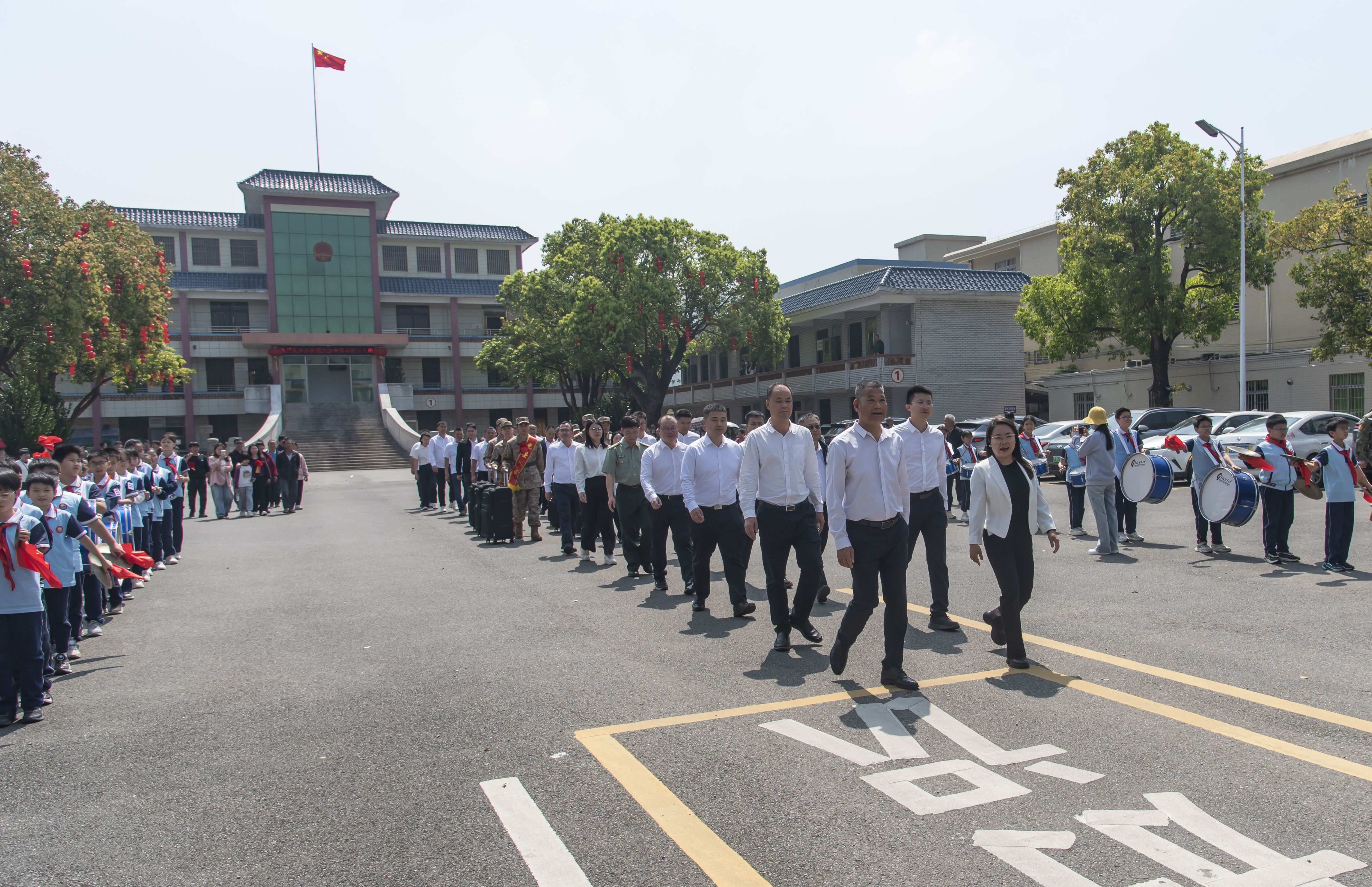 镇村干部、师生代表举行欢送仪式
