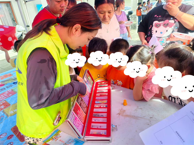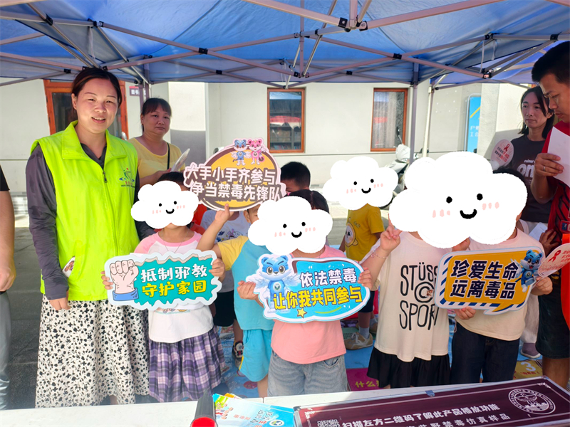 “禁毒防艾”宣传进乡村活动以寓教于乐为核心理念,通过设立醒目的禁毒宣传摊位,以“面对面”宣讲、“宣传+游戏”、悬挂宣传横幅、发放宣传资料等多种形式,向现场的亲子家庭普及禁毒防艾知识。通过参与游戏,收集印花并兑换奖品,既增加了活动的趣味性,也进一步提高了广大家庭预防艾滋病和拒绝毒品的能力,筑牢“不让毒品进我家”思想防线。