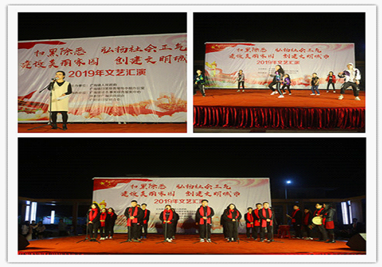 2019年开年伊始,为推进辖区扫黑除恶专项斗争、助力文明城市创建,1月17日晚,一场主题为“扫黑除恶 弘扬社会正气 建设美丽家园 创建文明城市”的文艺汇演在广海镇文体广场热烈举行。汇演精彩极了,镇委副书记许球英、镇人大副主席陈兰欢、派出所所长林孩以及党员群众近千人纷纷踏步前来观看。