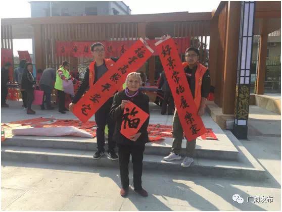 春节前,广海镇新时代文明实践所(站)、镇妇联、文化站联合在镇文化广场举行了“道德春联进万家”文明实践活动。我镇书法家现场挥毫为群众义写春联,一幅幅春联饱含着浓浓的祝福,洋溢着新春的气息。活动共送出挥春500多幅。