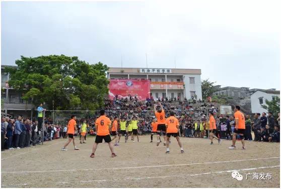 年初一至年初三,由广海(世界)乡亲首届恳亲大会赞助的男子九人排球赛在原敬睦中学举办。一个个精彩扣球、拦网,队员们互相配合,相互鼓励,展现了一场精彩绝伦的比赛,让在场的观众欢呼不已。经过激烈角逐,环城队获第一名,团村队获第二名,黄家庄队获第三名,城北队获第四名,广海城队获第五名。