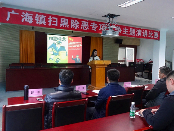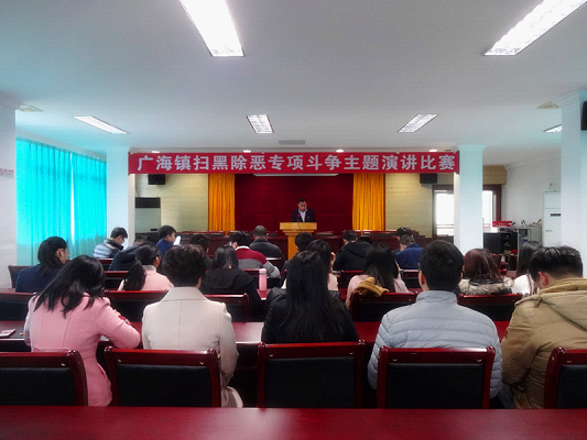 为积极响应台山市关于开展扫黑除恶专项斗争的工作要求,宣传动员广大党员干部投身于扫黑除恶专项斗争,推动扫黑除恶专项斗争不断取得新成效,2018年12月14日,广海镇举办扫黑除恶专项斗争主题演讲比赛。镇委副书记许球英,镇委委员、副镇长陈行芳等领导担任了本次比赛评委。