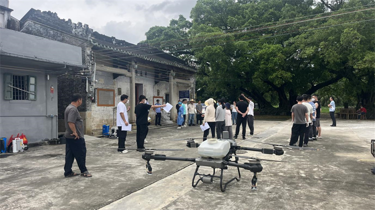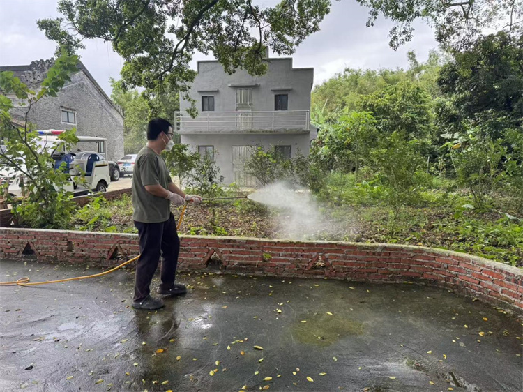 演练尾声,技术培训与经验交流同步开展。水步镇卫生院专人针对社区、农村场景,现场培训喷雾器规范使用,详解不同环境下的药剂配比与喷洒角度,指引核心区施药顺序。随后邀请农业企业演示结合农用无人机消杀,构成立体灭杀效果。密冲村分享防控经验,重点展示大功率喷洒设备在大面积区域的效用,为基层处置提供参考。