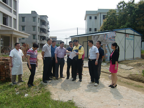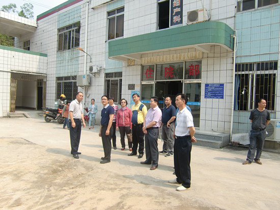 陈中伟先生一行先到我镇三合圩卫生院考察,然后到三合那金圩卫生分院了解新的住院楼建设情况。