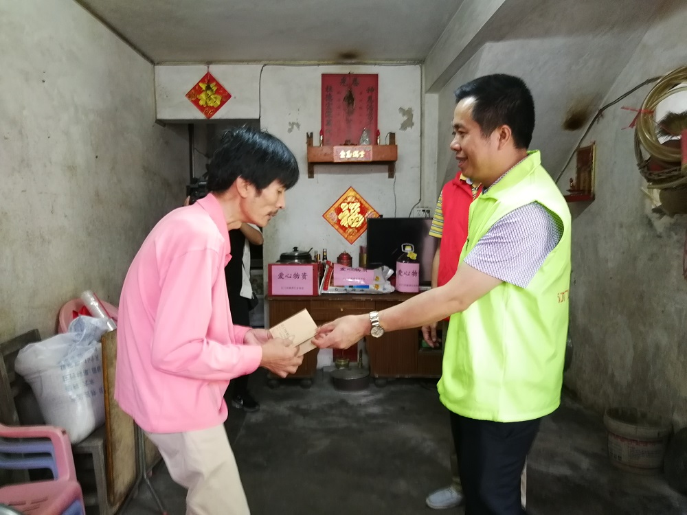 家住河西村委会旧大斜村的陈年添,年老多病,妻子有精神障碍疾病,儿子因车祸残疾,家庭极其贫困,平时生活只能靠低保收入和村委会发放的救济品维持生活。今年初,陈年添家因火灾被毁,导致一家三口无家可归。江门市酒类行业协会在得知这个情况后,将解决好困难党员陈年添家庭的生活问题作为头等大事来抓。