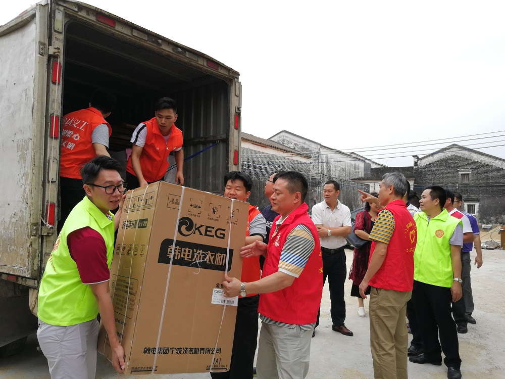 一方有难,八方支援。在台山市民政局、市妇联、市残联、深井镇委镇政府及陈年添亲戚朋友邻居等资助帮扶下,他得以重建房子,其所有生活用具用品,包括:床、餐桌、电视柜、冰箱、洗衣机、电热水器、电风扇、衣柜、沙发、床上用品、电饭煲、油米面等等由江门酒类行业协会全力出资,并为其送上慰问金,圆老党员陈年添的温馨“家庭梦”。陈年添一家人握着慰问人员的手,感动不已,再三表示感谢,感谢江门市酒类行业协会以实际的行动响应党的号召,帮助自己走出困境,让自己深深地感受到党和政府的温暖、社会的关怀。