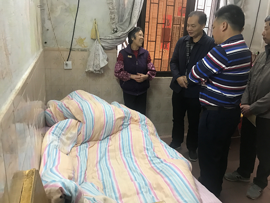 谢思敏一行来到朱攸的家中,通过其亲属介绍了解朱攸同志的基本情况,并获悉朱攸同志已卧床多年。其间,谢思敏关切询问朱攸同志目前的身体、就医、生活等情况,向其家属宣传党和国家对老干部工作的相关政策,嘱托其子女要关心照顾好老人,让其安享晚年,最后送上慰问品及慰问金。
