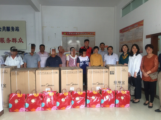 据了解,今年是新会工商联第二次深入到对接帮扶村开展“圆微心愿”活动,为更好地满足精准贫困户的“微心愿”,新会工商联根据贫困户的不同需求,购买冰箱、洗衣机、电视机、空调、粮食等生活用品。慰问组先后走访了江东村、獭山村、康华村的精准贫困户,对生活困难的贫困户进行慰问,耐心询问他们的生活生产情况,鼓励他们保持乐观精神,努力改善生活,2018年实现全面脱贫。当贫困户从新会工商联领导手中接到电器慰问品和慰问金时,一致表示:十分感谢慰问组的“圆微心愿”活动,他们会努力冲刺,踏实工作,努力脱贫致富。
