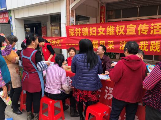 3月13日上午,深井镇妇联联合镇综治办、司法所、检察室等单位,开展以“‘你好新时代’—巾帼展风采法治我践行”为主题的“三·八”维权周宣传。现场通过有奖问答、派发宣传单张、现场解答等方式向妇女群众宣传反家暴法、扫黑除恶、禁毒、反邪教等内容,持续宣传男女平等基本国策,在全社会营造男女平等、和谐共进的良好氛围。