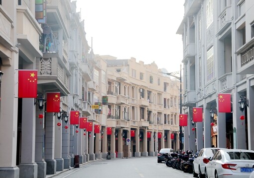 ▲历史文化街整齐划一挂国旗