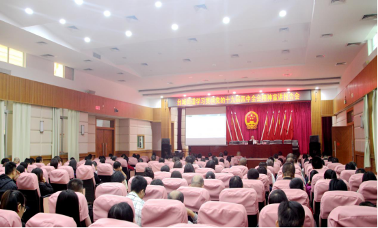 近日,台城街道办在会议中心举办学习贯彻党的十九届四中全会精神宣讲报告会。台城街道党政领导班子、全体干部、各村(居)委会“两委”干部约300余人参加报告会。