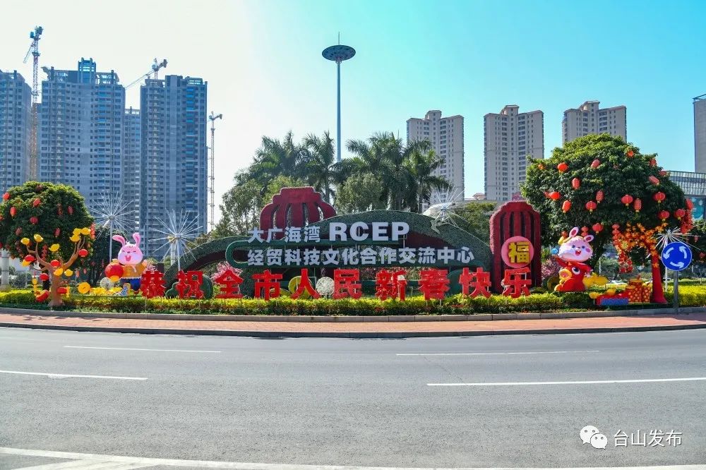 为扮靓城区门户,增加城区公园广场节日气氛,台山市在石化文化广场、金星湖湿地公园、站前广场、高速路口收费站前交通岛布设4座迎春接福大型花灯。
