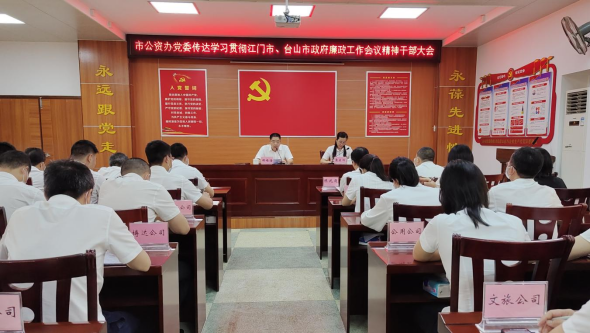 (▲市公资办党委传达学习贯彻江门市、台山市政府廉政工作会议精神干部大会)
